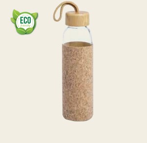 Borosilicate Glass Bottle with Cork Sleeve & Bamboo Lid