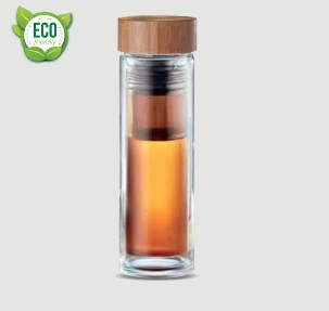 Double Wall Borosilicate Glass Bottle with Bamboo Lid & Tea Infuser