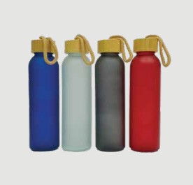 Frosted Glass Bottle with Bamboo Lid, Strap